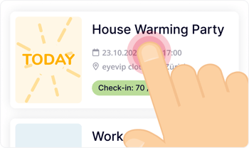Mit der eyevip Check-in App wickelst Du die Einlasskontrolle Deiner Events reibungslos ab. Die Gäste können entweder mit einem QR-Ticket oder über ihren Namen eingecheckt werden. Du hast jederzeit Zugriff auf alle relevanten Gästeinformationen und Statistiken.